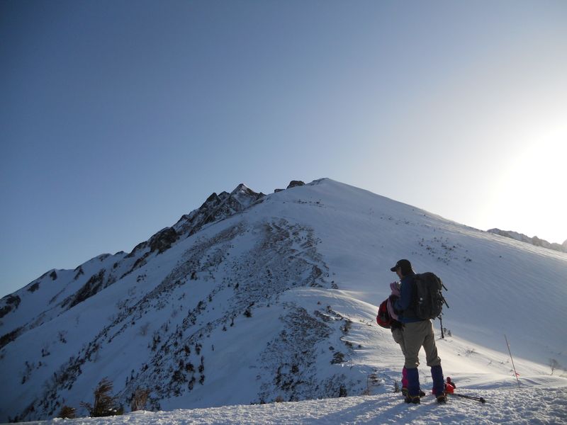 「丸山」で、この先へ進むかどうか?悩んでいる夫婦に会いました。ピッケルなし。